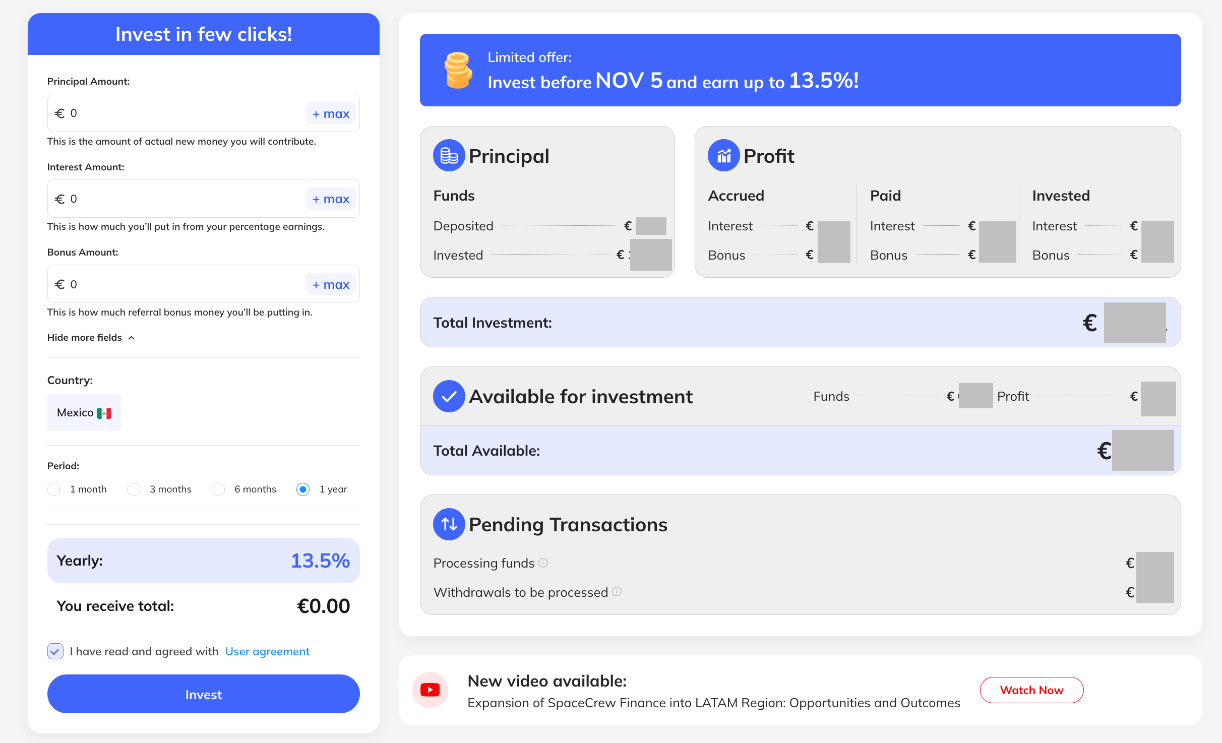 Select the Investment Period. Choose the duration of your investment. Options include 30 days, 3 months, 6 months, or 1 year.