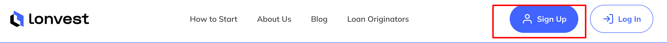 1. Click on the Sign-Up button located in the top-right corner of the Lonvest platform or follow the link provided.