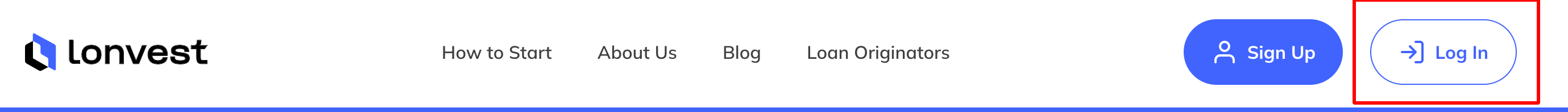 1. Click on the Login button located in the top-right corner of the Lonvest web platform or follow the link provided.